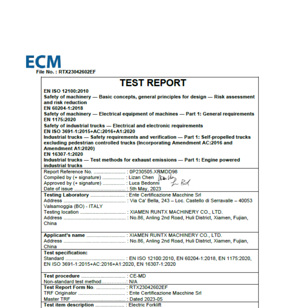 Dopo le opportune verifiche, ECM è venuta a conoscenza di un falso Test Report n°RTX23042602EF.
